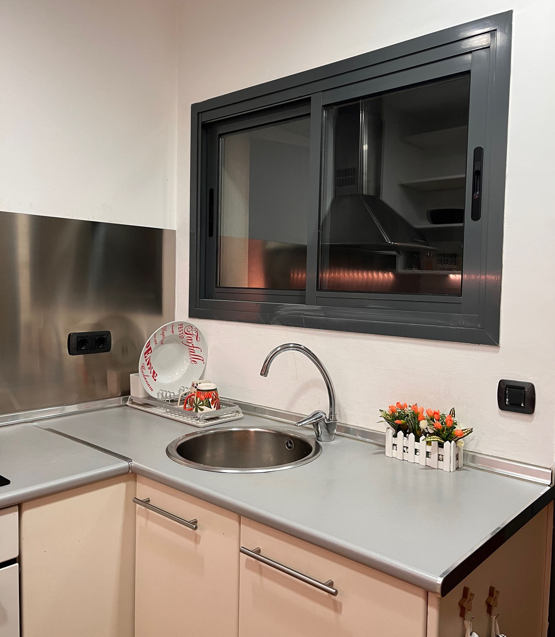 Avec un emplacement imbattable, notre logement est situé en plein centre de Figueres, avec une vue large et charmante sur la Plaça de la Palmera, où se trouve la maison natale de Dalí. Vous pourrez profiter de 80m2, séjour avec terrasse face à la place, cuisine entièrement équipée avec salon patio, salle de bain avec douche à jets, grande chambre double à l'extérieur avec vue. Découvrez la tranquillité du centre et l'atmosphère de Figueres